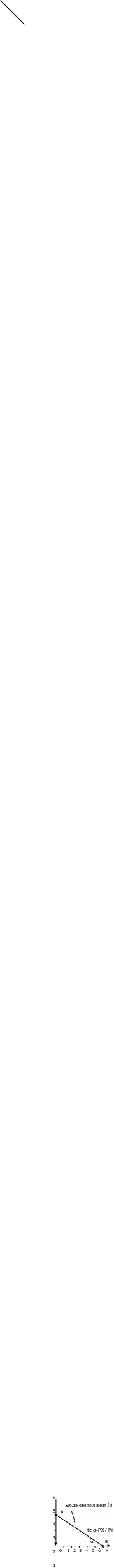 Угловой коэффициент бюджетной линии определяется соотношением цен на товары X и Y, он равен тангенсу угла наклона этой линии к оси абсцисс.