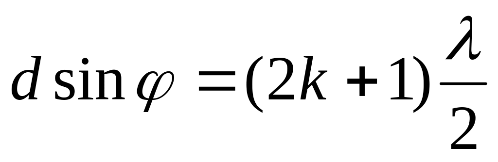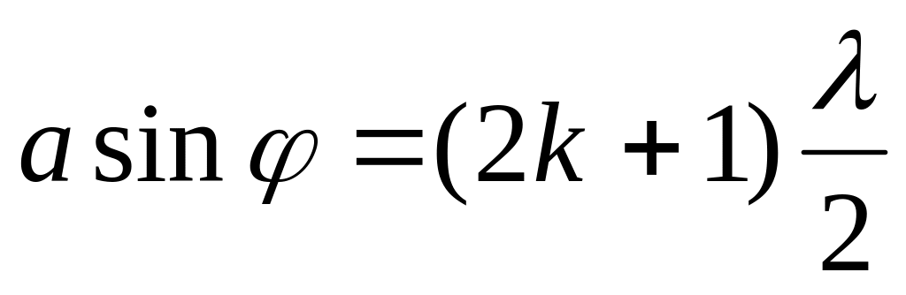 Ені -ға тең саңылауға тік түскен жарық кезіндегі дифракциялық минимум шартын көрсетіңіз:
