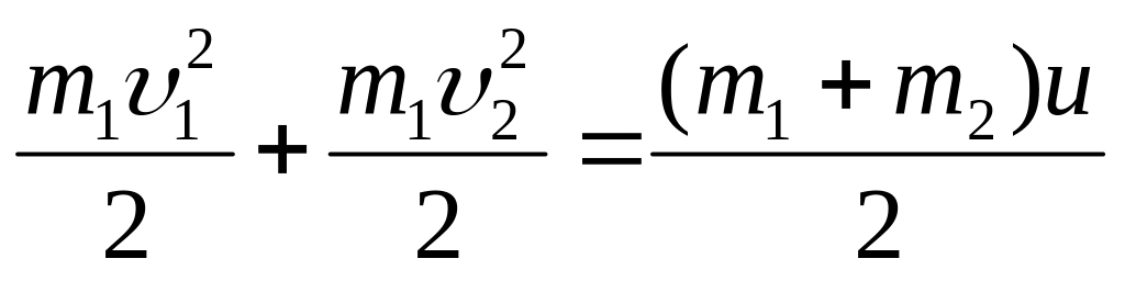 Массалары m1 және m2 бастапқы жылдамдықтары v1 және v2 болған шаралар абсолют серпімсіз соқтығысу үшін импульстің сақталу заңын жазып бітіріңіз: m1v1+ m2v2 = ?