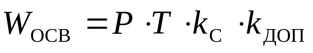 работы светильника за расчетный период
