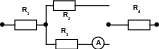 2. Найдите распределение сил токов и напряжений в цепи, изображенной на рисунке, если амперметр показывает 2 А, а сопротивление резисторов R1 = 2 Ом, R2 = 10 Ом, R3 = 15 Ом, R4 = 4 Ом.