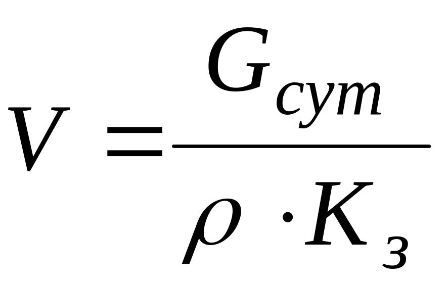 Сначала рассчитывается объемная часовая производительность цеха (участка) по пасте Vr (м3/ч), далее объем пасты Vп с учетом времени ее пребывания в аппарате по формуле: