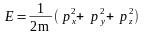 где m (также обозначаемое как m*) – эффективная масса электрона, которая в твердых телах обычно меньше, чем масса покоя электрона m0; ħ – редуцированная постоянная Планка ( ħ = h/2π ); kx, ky, kz – пространственные компоненты волнового вектора.