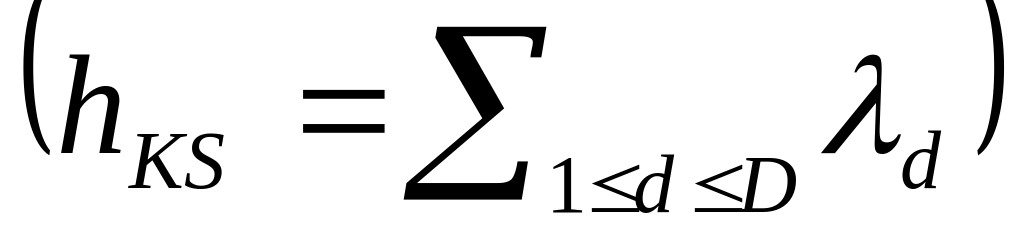 1) Колмогоров-Синай энтропиясы. Ляпунов экспонентасының көрсеткіші уақыт өткен сайын жүйені болжау мүмкіндігін қалай тез жоғалтатынымызды көрсететін алғашқы мөлшерлік ақпарат береді. Мұндай мағынада, бұдан артығырақ пайдалы бағаны Колмогоров-Синайдың hks энтропиясы бере алады [14]. hks энтропиясы жүйені бақылауға рұқсат етуді (өлшеудің дәлдігі) ескереді.