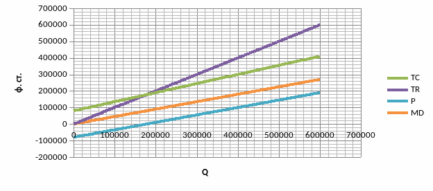 MD – маржинальный доход, разность между выручкой предприятия и ее переменными затратами