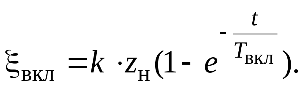 В начале переходного процесса = 0 – > нч – реле включается, увеличивается по экспоненте к величине kz. В момент равенства 0 – = нч – в – реле отключается, уменьшается по такой же экспоненте к нулю. При 0 – = нч реле снова включается.