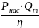 - полный КПД насоса,