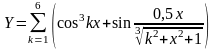Y=pow(cos(k*x),3)+sin(0.5*x/pow((k*k+x*x+1),1/3).