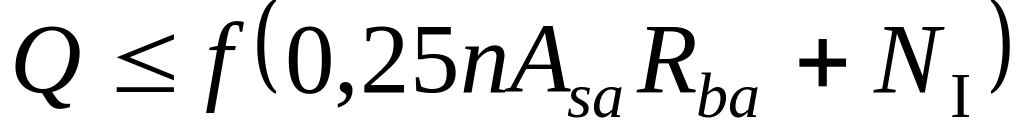 где n – число болтов крепления сжатой ветви для сквозной колонны или (для колонны сплошного типа) число сжатых болтов, расположенных с одной стороны базы колонны; N – минимальная продольная сжимающая сила, соответствующая нагрузкам, по которым определяется сдвигающая сила.