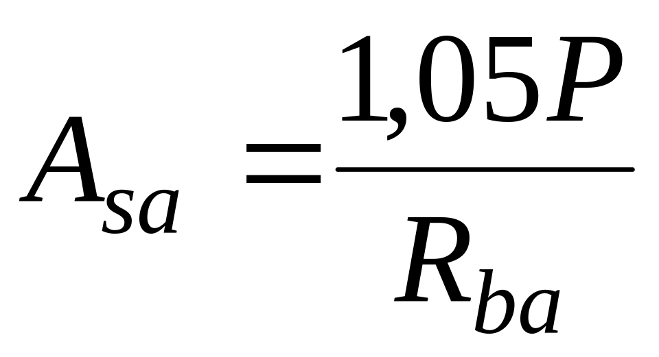 где P – расчетная нагрузка, действующая на болт; Rba – расчетное сопротивление материала болта.