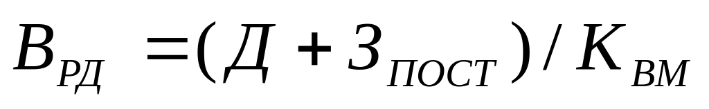 С этой целью при расчёте необходимого объёма выручки от реализации и объёма производства, реализация которого обеспечит расчётную выручку, в числителе помимо величины постоянных затрат учитывают величину накопленных издержек: