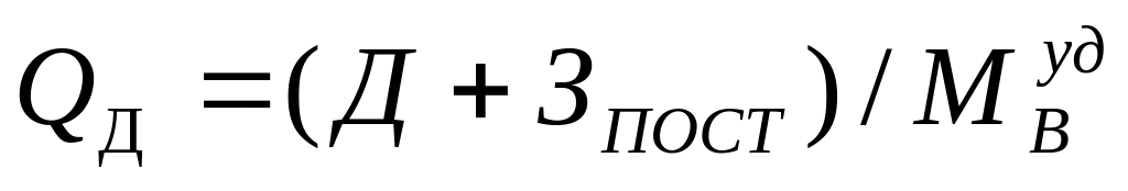 Вр – выручка от реализации продукции при объёме продаж Qпр единиц по цене Цр за единицу. При этом Цр·Qб =З пост+Зпер – условие безубыточности при объёме реализации Qб единиц и сумме постоянных (Зпост) и переменных (Зпер) затрат.
