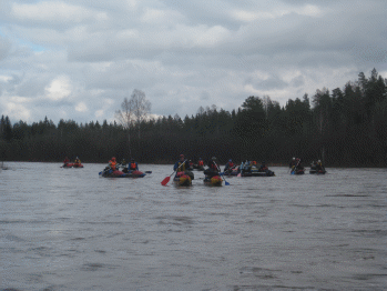 Подъем, сбор лагеря, сплав от стрелки с рекой Березяк до ур. Екатериновка, отработка чалки, сплава походной колонной, страховки с воды и с берега первым отделением.
