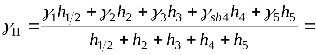 Так как ниже 4-го слоя песка залегает глина в полутвердом состоянии, являющаяся водоупором, то удельный вес данного слоя грунта рассчитывается без учета взвешивающего действия воды по формуле