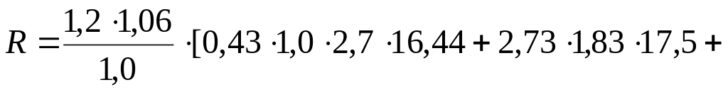 где hs – толщина слоя грунта выше подошвы фундамента со стороны подвала (рис. 4.1), hs = 1,7 м; hcf – толщина конструкции пола подвала, hcf = 0,1 м; cf – удельный вес конструкции пола подвала, для тощего бетона cf = 22,0 кН/м3; – осредненное расчетное значение удельного веса грунта, залегающего выше подошвы фундамента, = 17,5 кН/м3. Тогда,