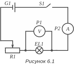 За допомогою реостату R1 встановити найбільше значення опору і представити схему на перевірку викладачу.
