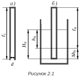 Початкові значення тиску Р1 та об’єму V1 беруться, коли трубка знаходиться у повітрі, тобто тиск газу дорівнюватиме атмосферному, а об’єм повітря – внутрішньому об’єму всієї трубки. Значення атмосферного тиску в момент виконання роботи визначається за показами наданого барометру, а об’єм газу розраховується за формулою: