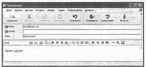 Для виклику редактора підготовки поштового повідомлення можна звернутися до меню Сообщение/Создать повідомлення або просто нажинати на відповідну кнопку в графічному меню.
