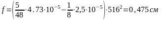Допустимый прогиб f=(l/200)=516/200=2,58 см.