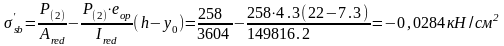 -усилие предварительного обжатия с учетом полных потерь; =258 кН;