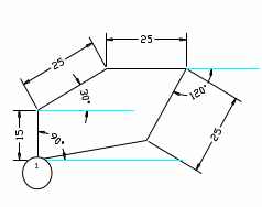 - Поводите мышью в направлении отрезка длиной 15 (рис.40.2) до появления линии отслеживания под углом 90 и удерживая мышь на этом направлении введите с клавиатуры длину отрезка: