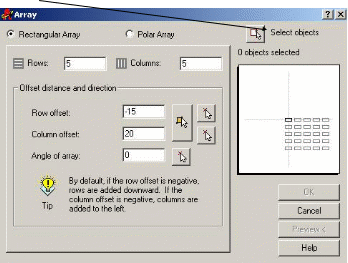 В диалоговом окне выберите тип массива Rectangular Array (Прямоугольный массив)