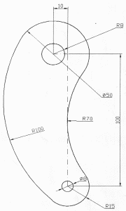 @100,80 и нажмите Enter.Выберите команду КРУГ (CIRCLE) . Щелкните в точке 1 (рис.1) (центр окружности). Введите с клавиатуры радиус: 5 и нажмите Enter.