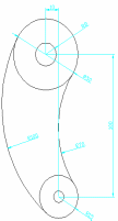 Используя команду группы редактировать удалим ненужную часть окружности радиусом 100 мм. Фигура построенаНанесите размеры на фигуру. Чертеж готов!