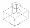 Теперь на верхней поверхности ящика построим цилиндр с радиусом 100 мм и высотой 150 мм. Команда CYLINDER (ЦИЛИНДР) запрашивает: