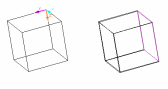 На рис. 41.3 в плоскости верхнего основания куба расположен прямоугольник. После операции клеймения три отрезка (части контура прямоугольника) добавлены в ребра, расположенные на верхней грани тела.