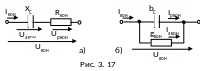 Так, катушка индуктивности с током IК, напряжением UК и углом сдвига фаз между ними φК на схеме замещения может быть представлена в виде последовательного (рис. 3.15, а) или параллельного (рис. 3.15, б) соединений активного и индуктивного элементов. Векторные диаграммы токов и напряжений для этих схем проведены соответственно на рис 3.16, а и б.