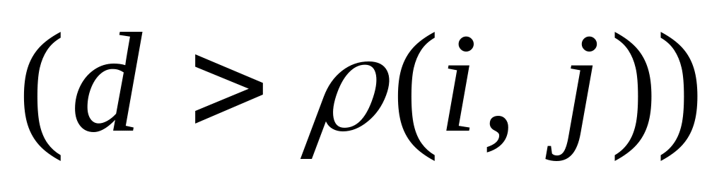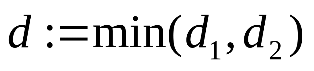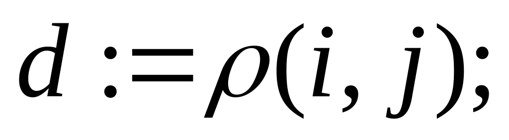 Найти минимальное расстояние d множества V{ } следующим образом: