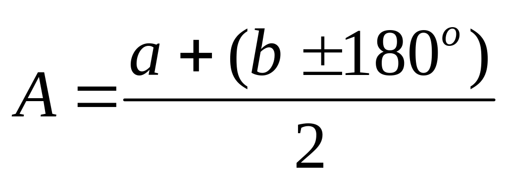 де а – відлік по північному кінці стрілки; b – відлік по південному кінці стрілки. У формулі (37) перед числом 180о ставлять знак ''+'' при b<180o, і знак '' - '' при b>180о.