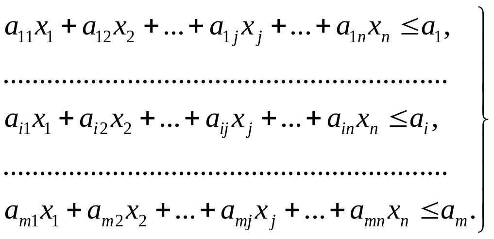 Если в системе (2) среди коэффициентов ai}- и at есть дробные числа, то в каждом неравенстве приведем их к общему знаменателю и на этот знаменатель неравенство умножим. От этого смысл неравенства не нарушится, а все коэффициенты станут целыми. Поэтому, не нарушая общности, можно предполагать все коэффициенты системы (2) целыми числами.