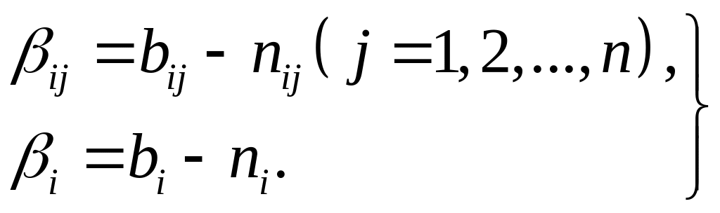 Пусть дробным является свободный член bi. В этой же i-и строке среди коэффициентов bij могут быть как целые, так и дробные. Обозначим буквой п с соответствующими индексами наибольшее целое число, не превосходящее данный коэффициент. Так, например, если bi = 1,7, то ni = 1; еслиbi1 = —1,4, то ni1 = — 2; если bi2 = 3, то и ni2 = 3 и т. д.