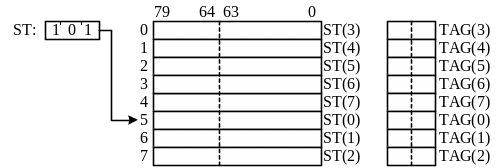 Рисунок 16 - Нумерация арифметических регистров (при ST = 5) и соответствующих полей регистра
