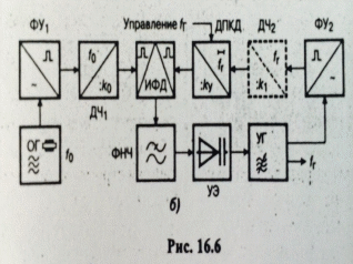 2.Усилитель промежуточной частоты (УПЧ) — электронный усилитель сигнала промежуточной частоты. Применяется в трактах радиоприёмных и радиопередающих устройств, измерительных приборов. Широко используются при построении систем связи, радиолокации, радионавигации. Благодаря применению УПЧ достигается полная развязка между каскадами усиления в многокаскадных усилителях. Без применения УПЧ даже слабые наводки, создаваемые верхними каскадами усилителя, попадая в нижние каскады, вызвали бы эффектсамовозбуждения колебаний, сделав невозможной работу усилителя.
