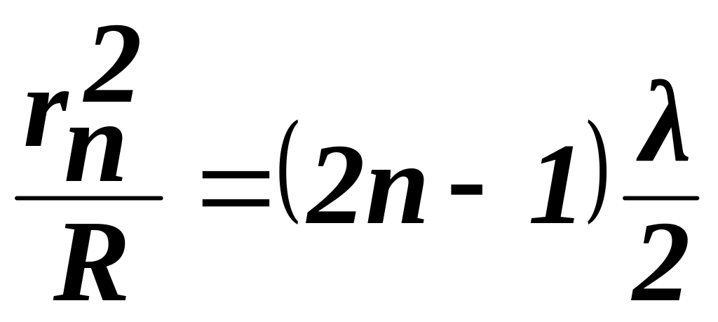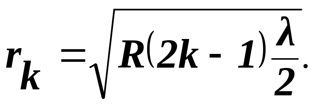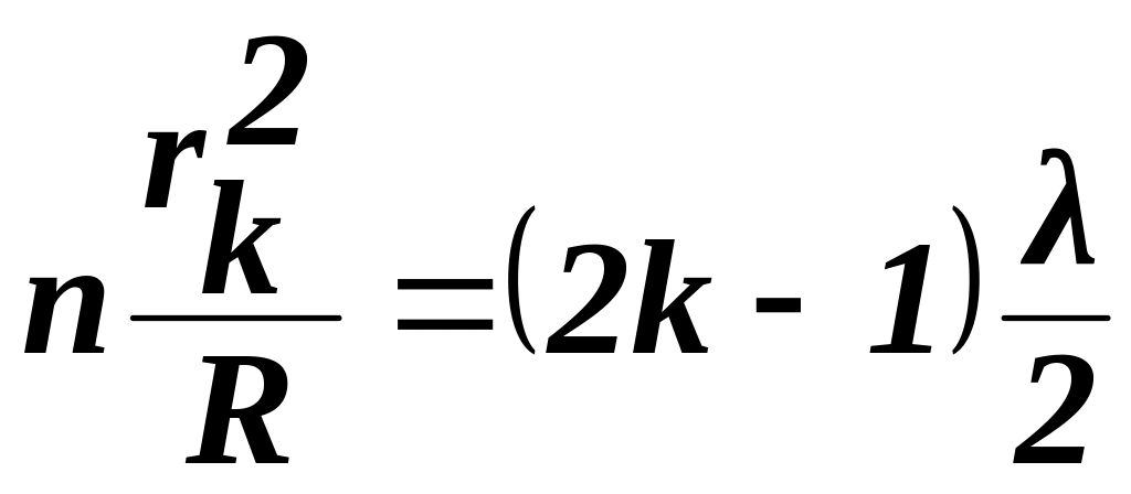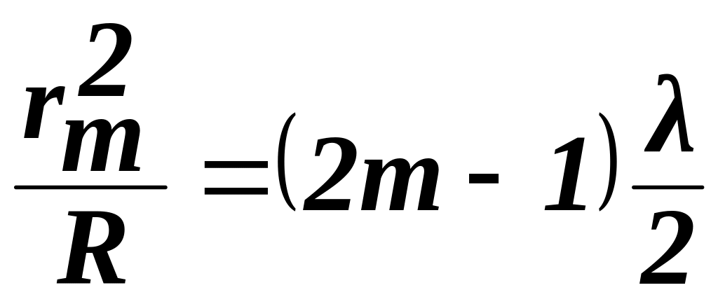 В проходящем свете наблюдается дополнительная картина – центральное пятно светлое, следующее кольцо темное и т.д. Условие (2) для запишется в этом случае