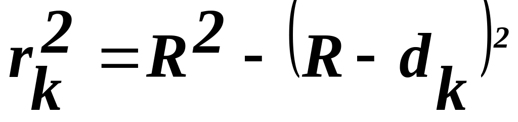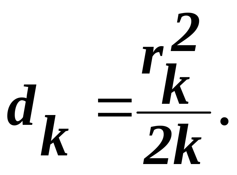 Из рис. 3 видно, что радиус кольца Ньютона rk, радиус кривизны линзы R и толщина воздушной прослойки d связаны соотношением