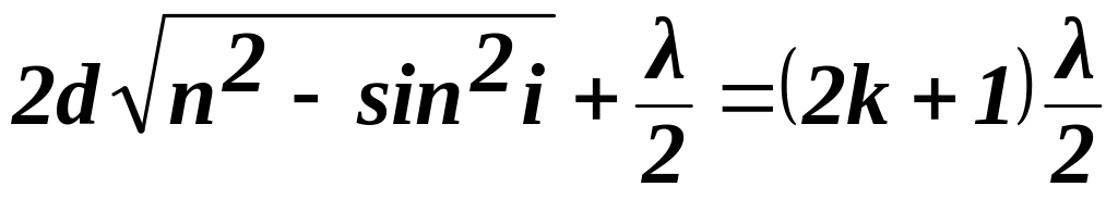 где показатель преломления воздуха принят равным единице, а член /2 учитывает сдвиг по фазе на при отражении света от поверхности пластины. Светлые кольца соответствуют d, для которых