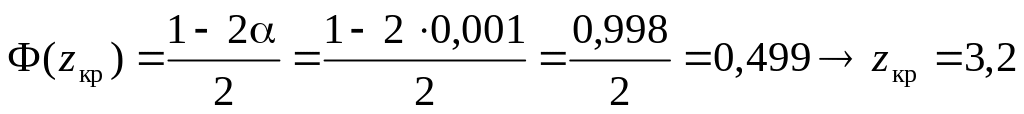 При альтернативній гіпотезі будуємо двобічну критичну область. Враховуючи, що Г є невідомою величиною, для побудови цієї області беремо статистичний критерій (452).