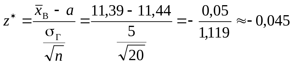 Розглянутий метод побудови критичних областей придатний лише за умови, коли відоме значення середнього квадратичного відхилення ознаки генеральної сукупності. При цьому спостережуване значення критерію обчислюється так: