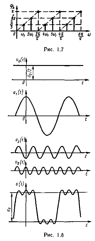 Ф / ф = 3 [ω1 = 2р / (3ф)]. Число составляющих в спектре бесконечно велико. Крутизна фронтов импульсов обусловлена наличием в спектре составляющих с частотами, существенно превышающими основную частоту ω1.