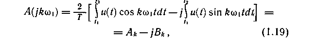 Воспользовавшись формулой Эйлера е - jkw t = coskw t - j sinkw t, выразим комплексный спектр A (jkw 1) в виде действительной и мнимой частей: