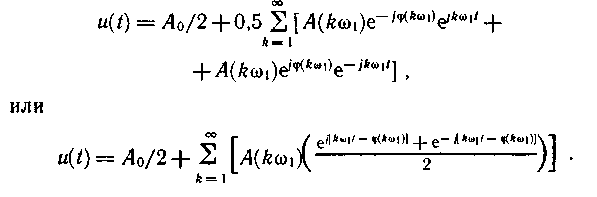 Спектры периодических сигналов. Периодических сигналов, естественно, не существует, так как любой реальный сигнал имеет начало и конец. Однако при анализе сигналов в установившемся режиме можно исходить из предположения, что они существуют бесконечно долго и принять в качестве математической модели таких сигналов периодическую функцию времени. Далее рассматривается представление таких функций, как в виде суммы экспоненциальных составляющих, так и с преобразованием их в гармонические.