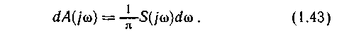 Величину S(jω) называют комплексной спектральной плотностью или спектральной характеристикой. Она имеет размерность [амплитуда / частота]. На каждой конкретной частоте амплитуда соответствующей составляющей равна нулю. Сравнивая (1.15) и (1.42), находим, что бесконечно малому интервалу частоты dω соответствует составляющая с бесконечно малой комплексной амплитудой dA(jw ):