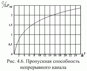 т.е. зависимость пропускной способности непрерывного канала от отношения сигнал/шум логарифмическая.
