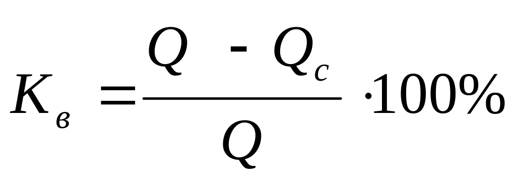 де Q — витрата свіжої води, що забирається з джерела водопостачання, м3/добу; Qc — витрата cкидної води, м3/добу; Qоб— витрата оборотної системи водопостачання, м3/добу.