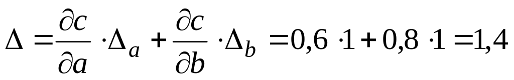 При измерениях длин катетов прямоугольного треугольника получены результаты соответственно 3 и 4 м. Известно, что в этих измерениях абсолютная погрешность измерений длины не превышает 1 мм. Оцените длину гипотенузы и границы погрешности полученного результата.