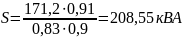 Определяем полную мощность по низковольтным потребителям по формуле (1).